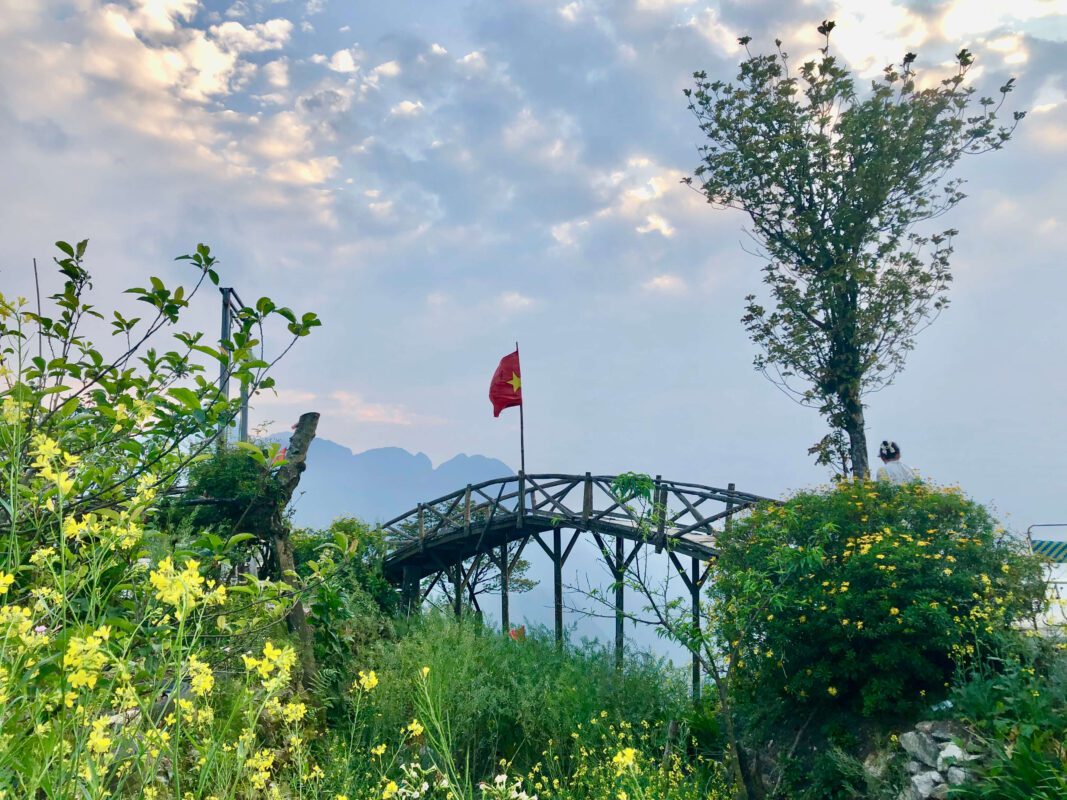 You hike to higher elevations with panoramic views of the mountains, including views toward Fansipan, the highest peak in Indochina.